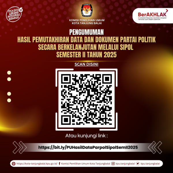 #TemanPemilih, Berikut disampaikan kepada masyarakat Pengumuman Hasil Pemutakhiran Data dan Dokumen Partai Politik Secara Berkelanjutan Melalui Sipol Semester II Tahun 2025.