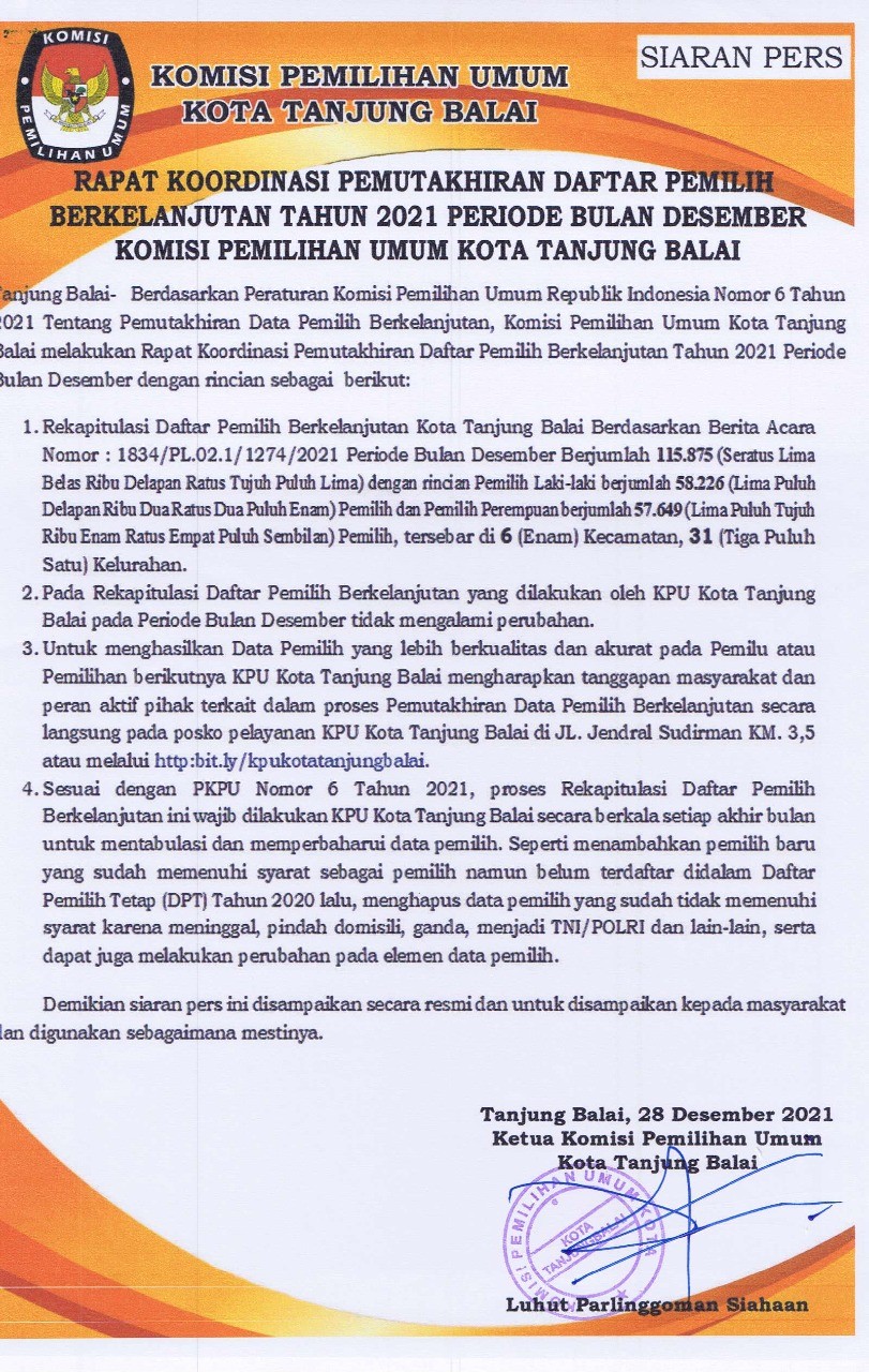 Ketua KPU Tanjung Balai, Luhut Parlinggoman Siahaan, Kamis,(21/10/2021) membenarkan pihaknya menerapkan scan barcode aplikasi pedulilindungi bagi staf dan tamu yang hendak berkunjung ke kantor KPU Tanjung Balai. “mendukung program pemerintah”, kami KPU Tanjung Balai tidak mau gegabah meskipun pandemic sudah melandai, kita tetap menerapkan prokes dengan ketat mulai dari wajib masker, hand sanitizer, jaga jarak hingga barcode pedulilindungi,” ucapnya. Hal itu kata dia tidak lain guna menjaga kesehatan semua pihak mulai dari staf hingga tamu yang berkunjung terlebih lagi kini jajarannya telah melakukan berbagai persiapan guna menyambut tahapan pemilu 2024 mendatang.