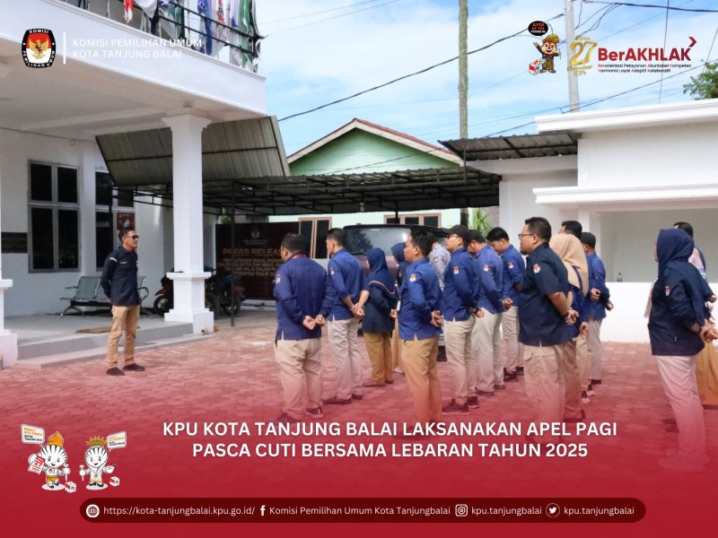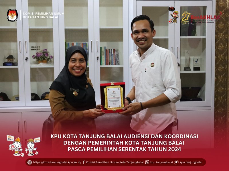 pada hari Senin, 21 April 2025, Ketua KPU Kota Tanjung Balai, Fitra Ramadhan Panjaitan bersama Anggota KPU, Ulil, Suci, dan Delila, didampingi Sekretaris KPU Eka Ansari Siregar beserta jajaran Sekretariat KPU Kota Tanjung Balai melakukan silaturahmi dan audiensi dengan Walikota Tanjung Balai, Mahyaruddin Salim B. Pertemuan yang berlangsung di ruang kerja Walikota ini juga dihadiri oleh Asisten Pemerintahan dan Kesejahteraan Rakyat, Drs. Abu Hanifah, MM, serta jajaran pejabat Pemerintah Kota Tanjung Balai. Dalam audiensi tersebut, Ketua KPU menyampaikan laporan pelaksanaan Pilkada Tahun 2024 di Kota Tanjung Balai. Walikota menyampaikan apresiasi dan terima kasih atas kerja keras KPU yang telah menyukseskan penyelenggaraan Pilkada secara aman dan lancar. Beliau juga mengajak seluruh elemen masyarakat untuk terus berpartisipasi aktif dalam mewujudkan visi "Tanjung Balai Menuju Kota Emas". Sinergi dan kolaborasi antara KPU dan Pemerintah Daerah diharapkan terus terjaga demi terselenggaranya demokrasi yang berkualitas di Kota Tanjung Balai.