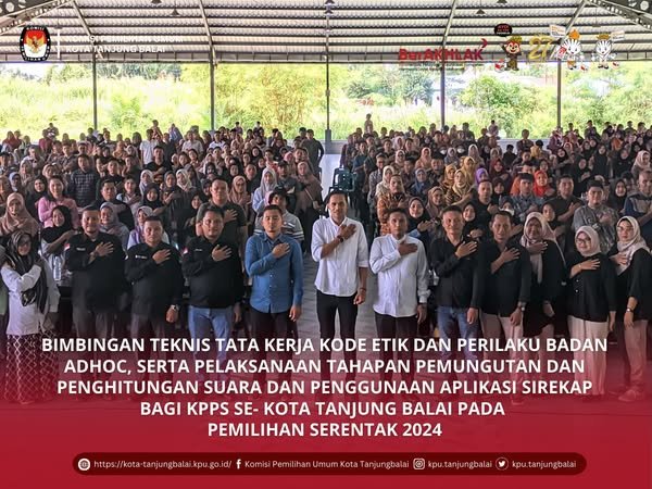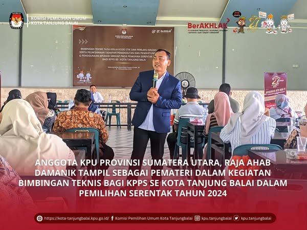 Anggota Komisi Pemilihan Umum (KPU) Kota Tanjung Balai, Ulil Amri, menutup rangkaian kegiatan Bimbingan Teknis (Bimtek) bagi anggota Kelompok Penyelenggara Pemungutan Suara (KPPS) se-Kota Tanjung Balai pada 10 November 2024 di Gedung Serba Guna Gian Franco Cruder SX. Bimtek ini berlangsung selama tiga hari, mulai 8 hingga 10 November 2024, dengan diikuti oleh seluruh anggota KPPS di wilayah Kota Tanjung Balai.