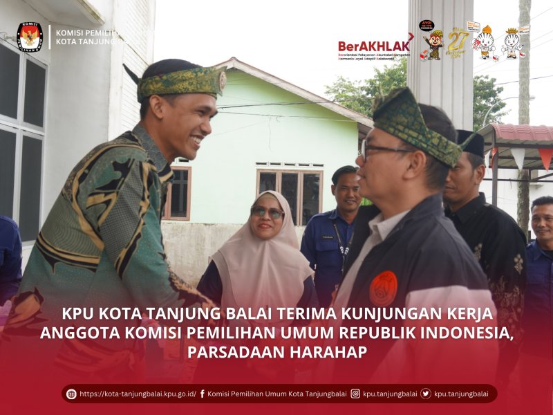 KPU Kota Tanjung Balai menerima kunjungan kerja dari Anggota Komisi Pemilihan Umum Republik Indonesia, Parsadaan Harahap, di kantor KPU Tanjung Balai yang berlokasi di Jl. Jenderal Sudirman KM 3,5, Datuk Bandar. Kunjungan ini disambut hangat oleh Fitra Ramadhan Panjaitan, Ketua KPU Kota Tanjung Balai, beserta Anggota, serta Sekretaris Eka Ansari Siregar dan seluruh jajaran ASN/PPNPN KPU Tanjung Balai.