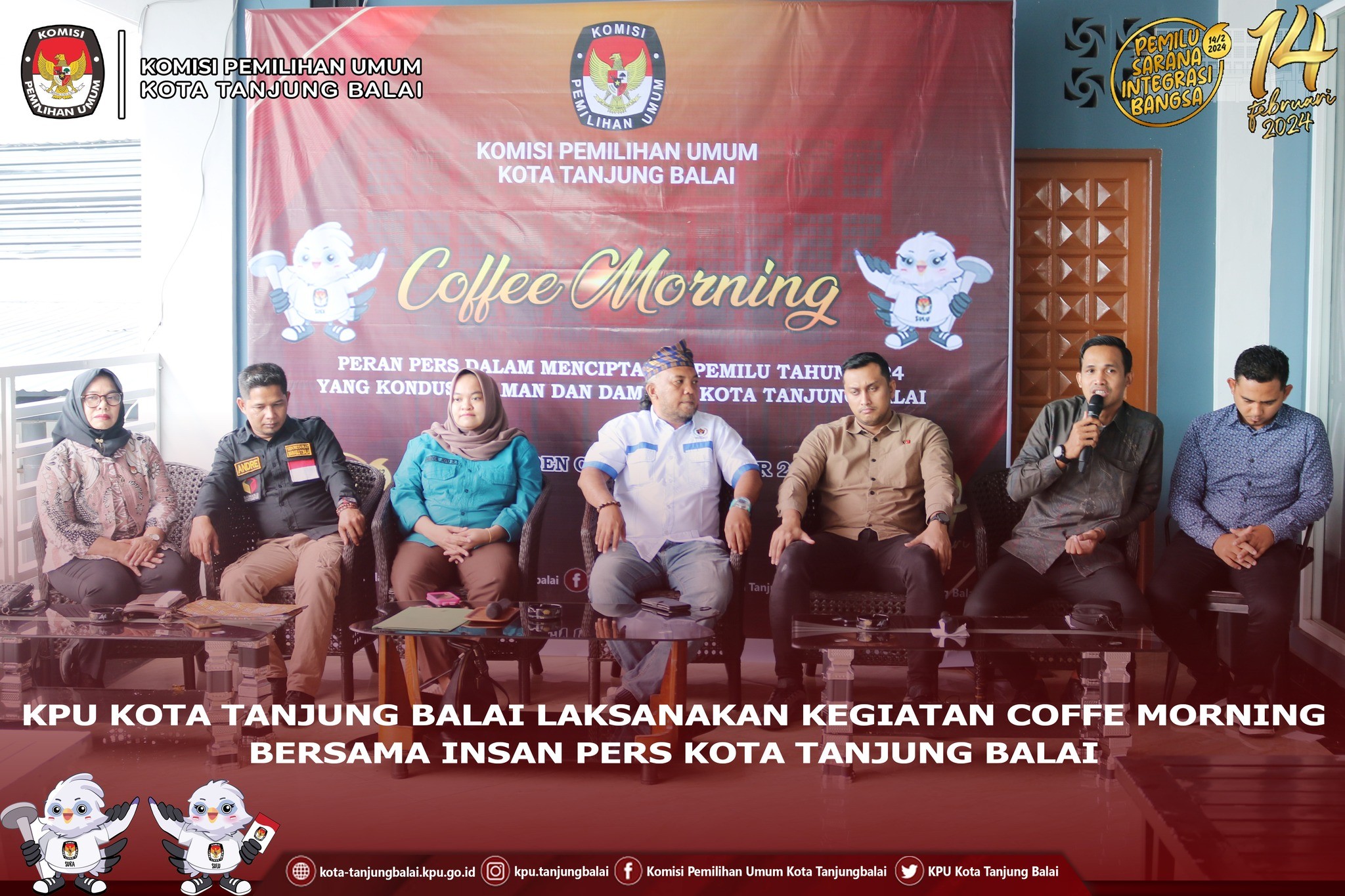 Komisi Pemilihan Umum Kota Tanjung Balai melaksanakan Kegiatan Coffee Morning Bersama Media Pers Kota Tanjung Balai dengan tema Peran Pers Dalam Menciptakan Pemilu Tahun 2024 Yang Kondusif, Aman dan Damai Di Kota Tanjung Balai bertempat di Arteri Garden Cafe Rabu 6 Desember 2023.