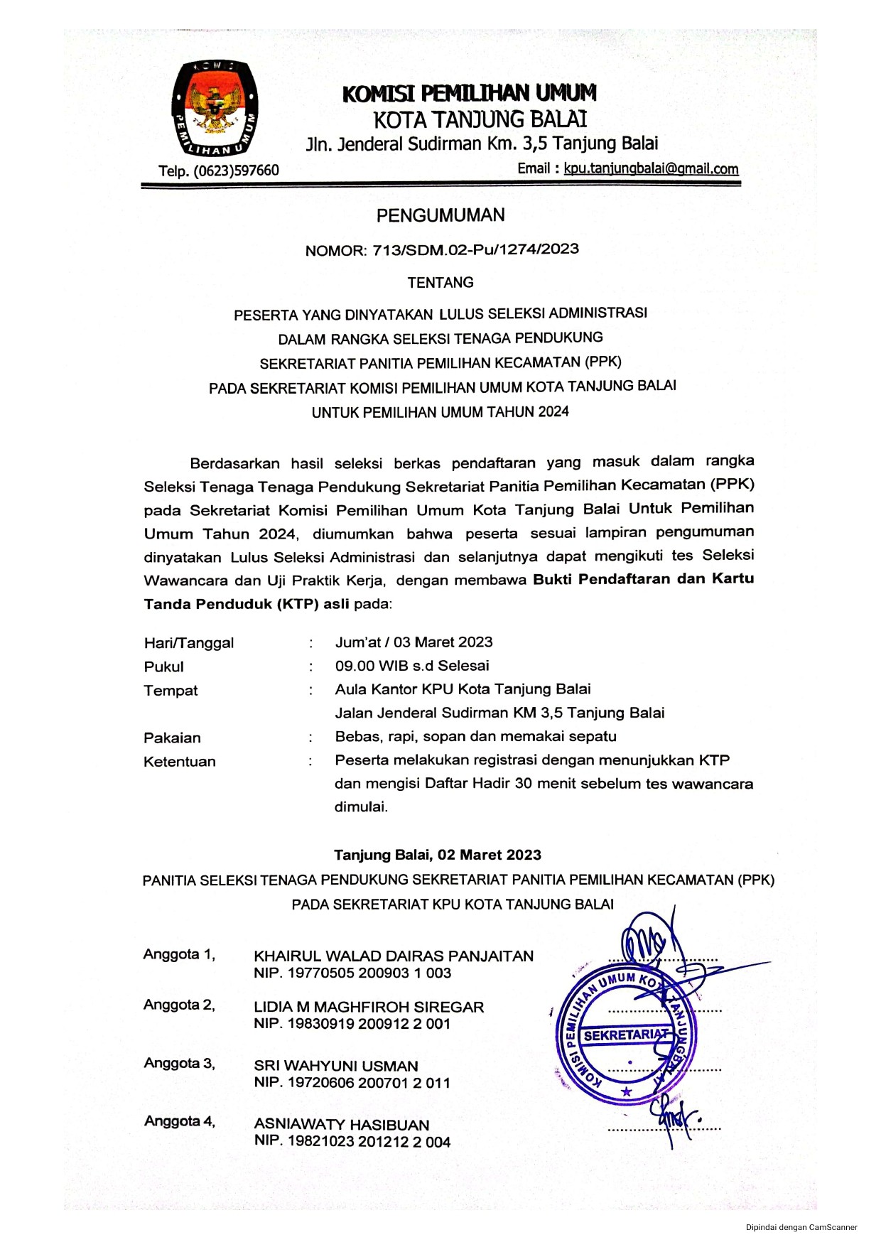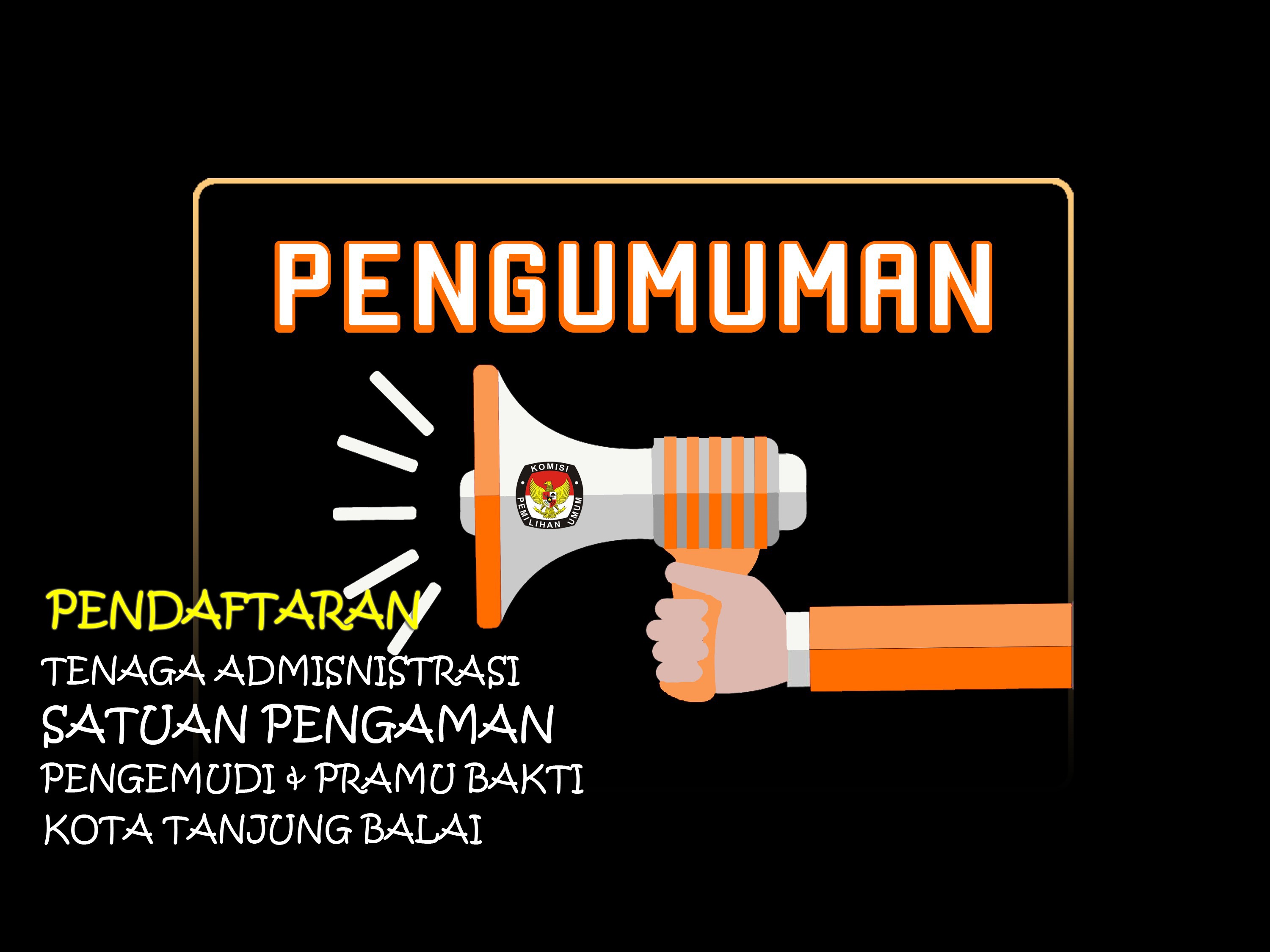 #TemanPemilih, Berikut Kami Sampaikan Pengumuman tentang Lowongan Pendaftaran Tenaga Administrasi, Satuan Pengamanan (Jagat Skasana), Pengemudi dan Pramubakti sekretariat Komisi Pemilihan Umum Kota Tanjung Balai