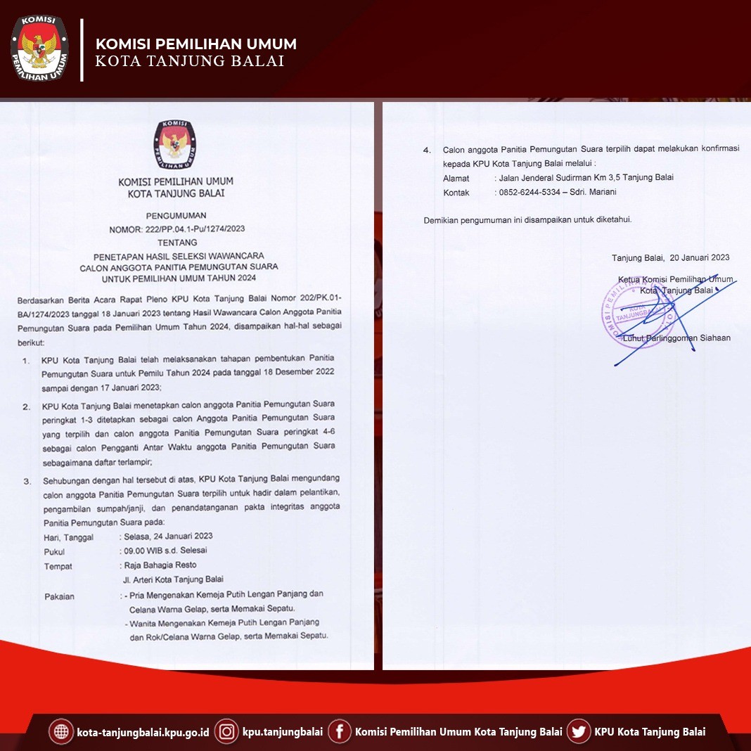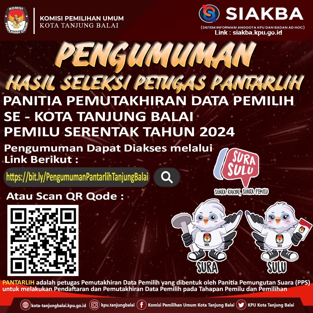 #TemanPemilih, Berikut Kami Sampaikan Pengumuman Komisi Pemilihan Umum Kota Tanjung Balai tentang Lowongan Pendaftaran Tenaga Pendukung Sekretariat Panitia Pemilihan Kecamatan (PPK) Kota Tanjung Balai Provinsi Sumatera Utara Untuk Pemilu Tahun 2024