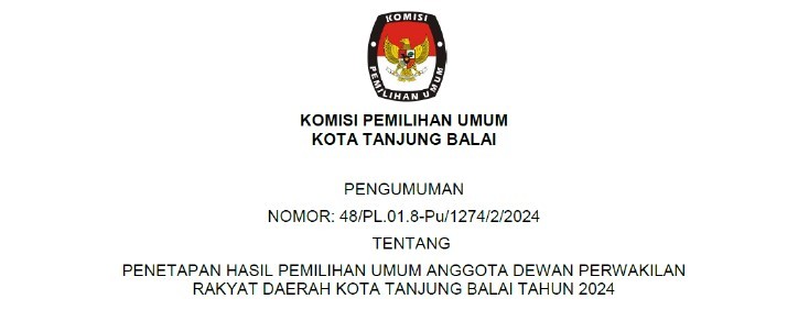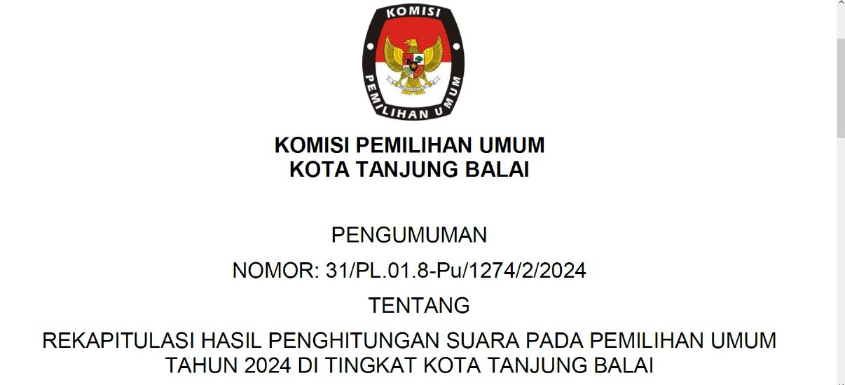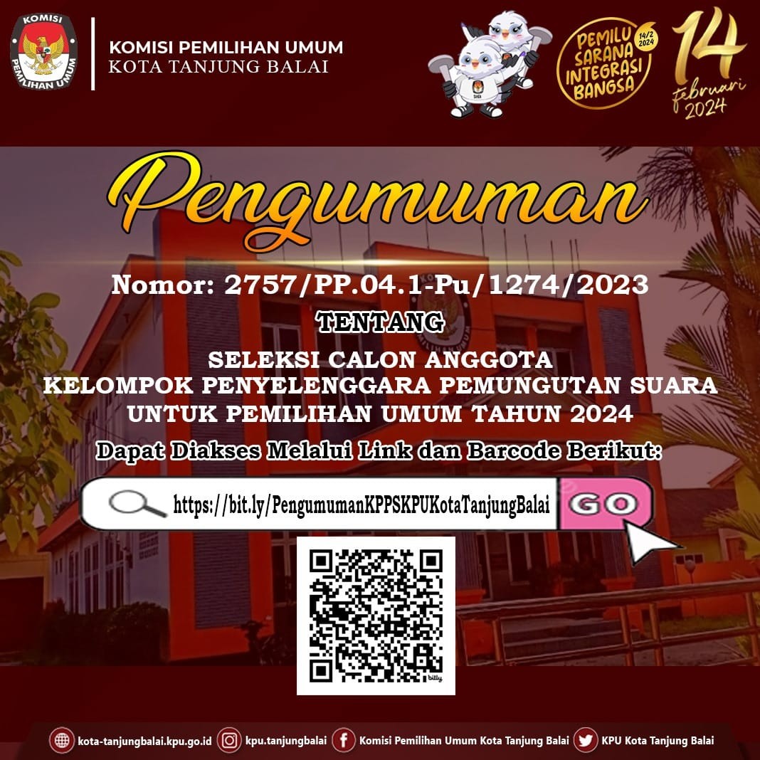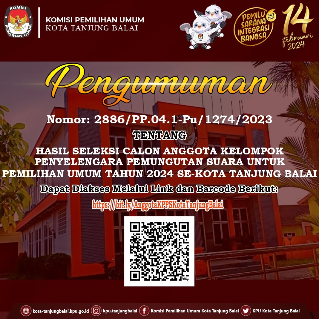 #TemanPemilih, Pengumuman Komisi Pemilihan Umum Kota Tanjung Balai Nomor 2886/PP 04.1-Pu/1274/2023 Tentang Hasil Seleksi Calon Anggota Kelompok Penyelenggara Pemungutan Suara (KPPS) pada Pemilihan Umum Tahun 2024 Se- Kota Tanjung Balai.