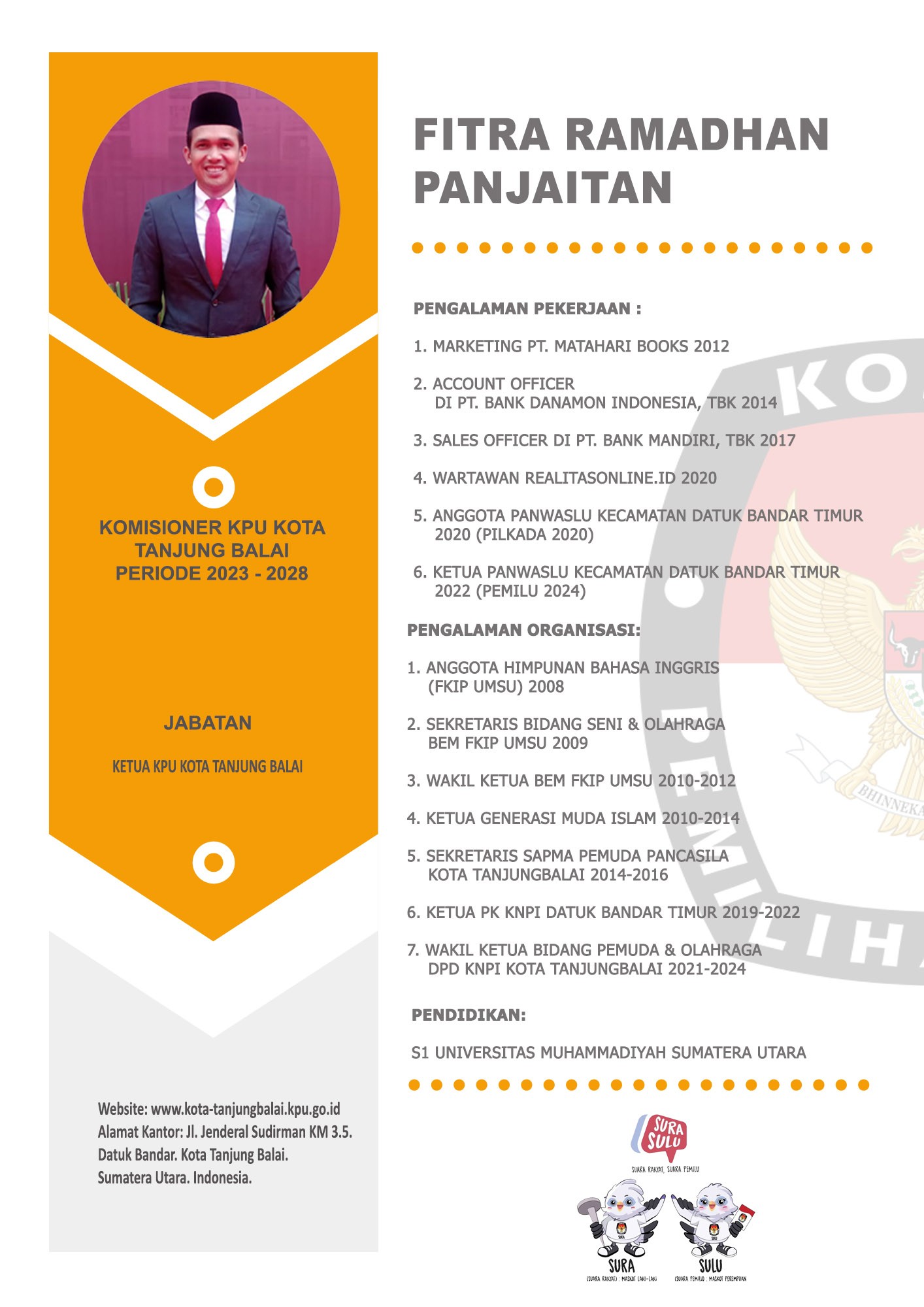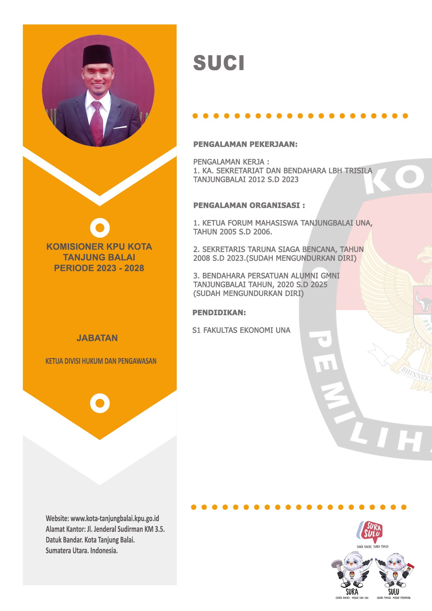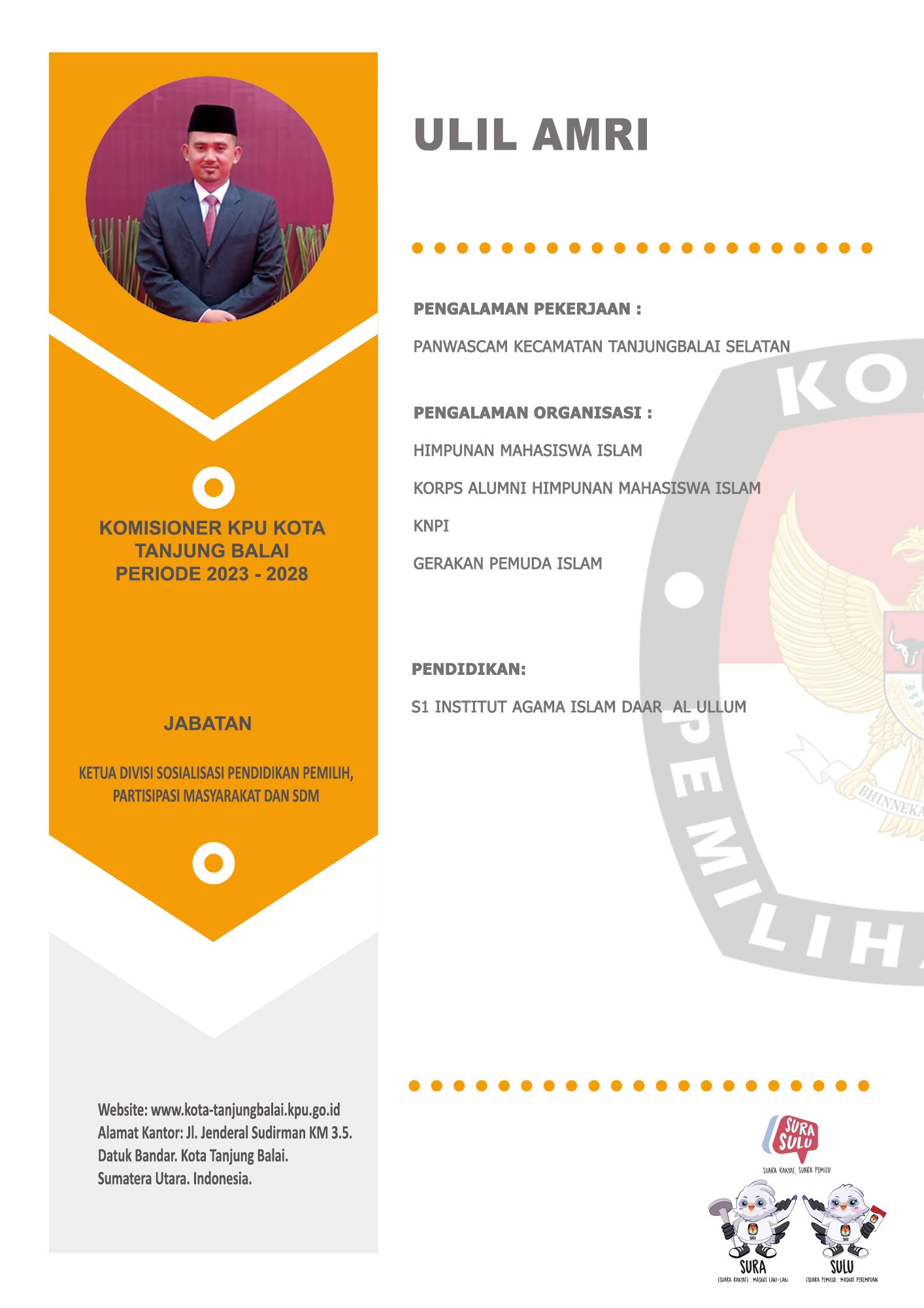 Profil Anggota dan Sekretaris KPU Kota Tanjung Balai